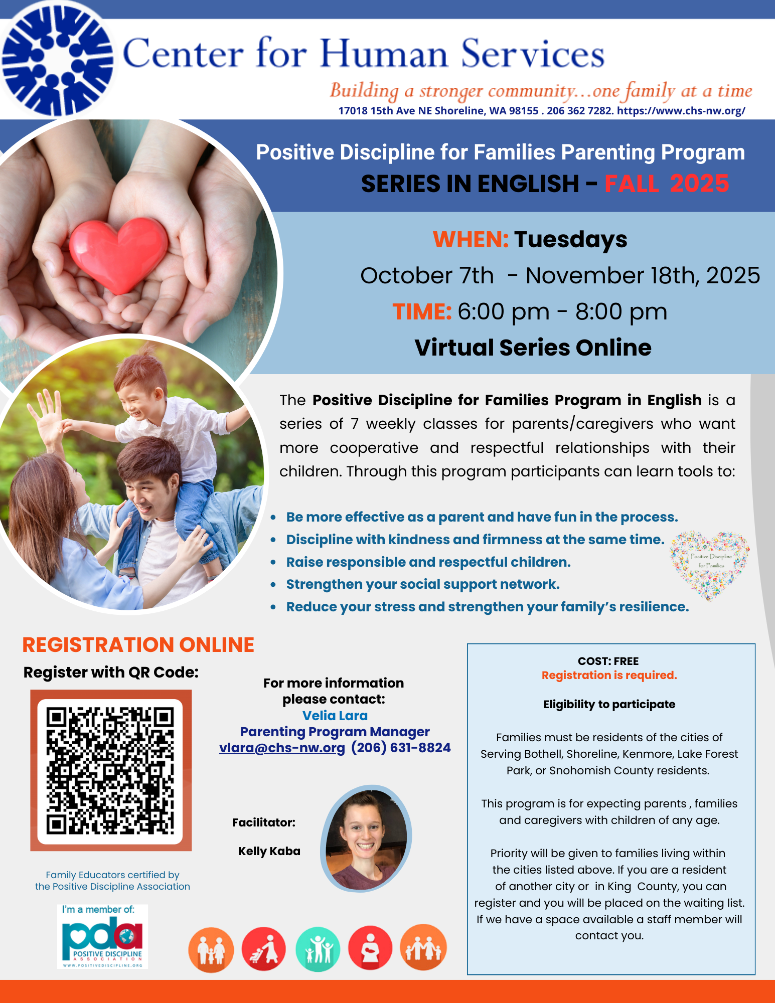 Location: Center for Human Services 17018 15th Ave NE Shoreline, WA 98155